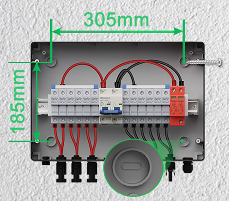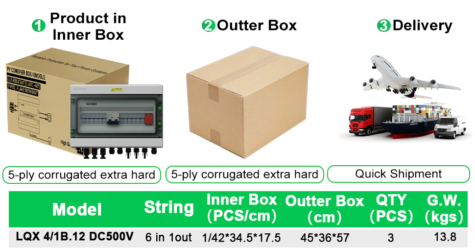 పివి కాంబైనర్ బాక్స్ 6 లో 1 అవుట్ DC500V/600V/800V ఇన్వర్టర్లు మరియు సౌర ఫలకాలను దెబ్బతినకుండా సమర్థవంతంగా రక్షిస్తుంది మరియు అగ్ని నుండి పంపుతుంది.